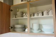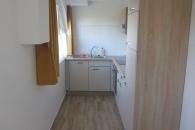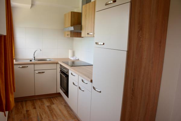 - kuhinja ima štedilnik, pečico, pomivalni stroj, hladilnik z zamrzovalnim