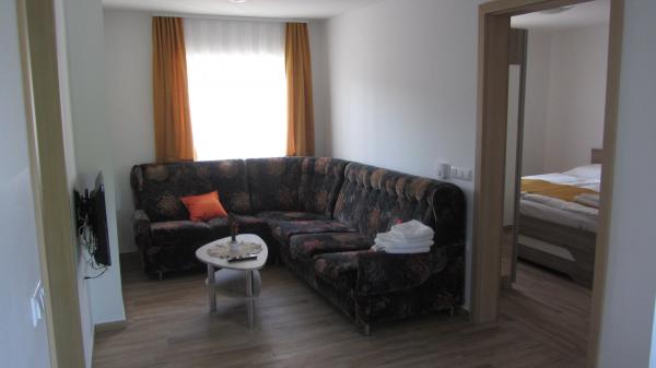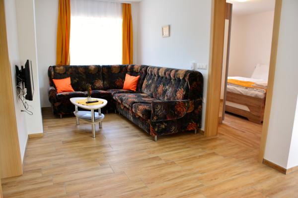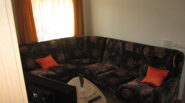 dnevna soba s klubsko mizico, kavčem (možnost dodatnga ežišča) in pograda, TV/SAT TV, klimo