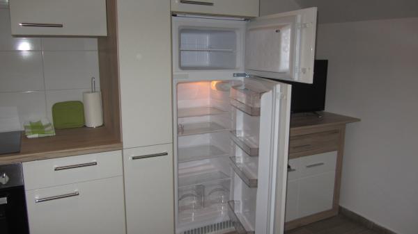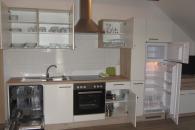 - The kitchen has a stove, oven, dishwasher, refrigerator with freezer compartment, microwave, kettle, coffee maker