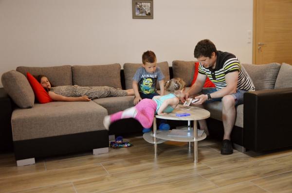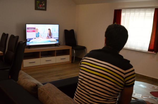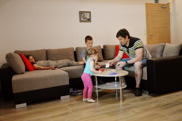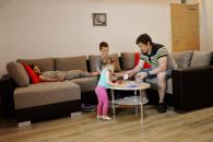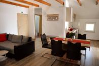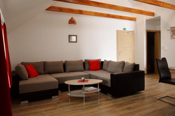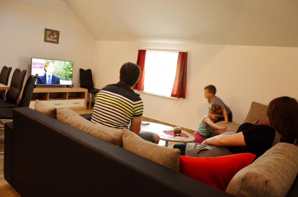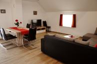 - Wohnzimmer mit SAT-TV, große U Wohnlandschaft (2 Schlafmöglichkeiten), Wohnzimmertisch, Klima