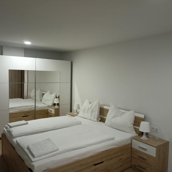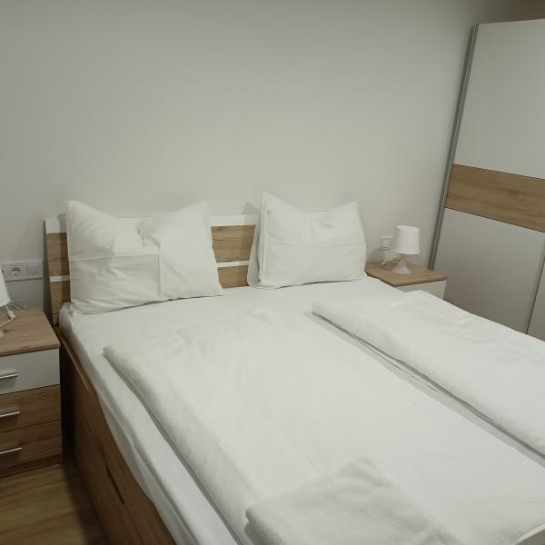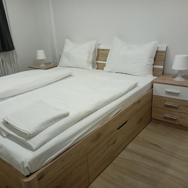 - Schlafzimmer 1 - großes Familienbett 200 cm x 180 cm, Nachttische, großer Kleiderschrank