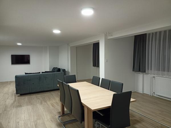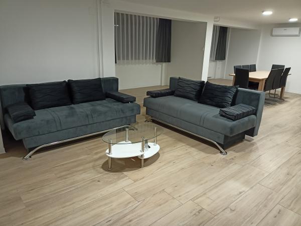 - Wohnzimmer mit Couchtisch, zwei Sofas (Möglichkeit von zwei Zustellbetten), TV / SAT-TV,